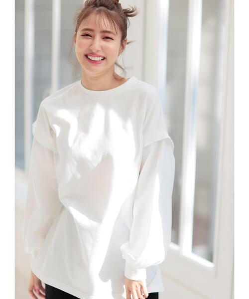 ★WEB限定アイテム★ 2021 春アイテム シンプルなワンカラーのロンTはビッグシルエットでトレンド感たっぷり。程よい厚みのやわらかな生地で快適な着心地になっています。ショルダー部分に切り替えを入れ、レイヤードのようなアクセントに。長めの裾丈が気になる腰回りをカバーし、すっきりシルエットで着られます。サイドにはスリット入り。パンツでマニッシュに着こなすのはもちろんふんわりスカートと合わせても◎。・伸縮性あり・スリットあり