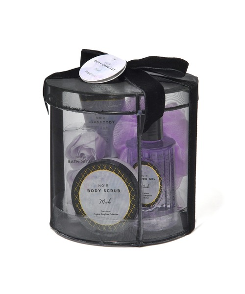 エレガントなパッケージがギフトにおすすめのボディケアセットです。ボディウォッシュ、バススポンジ、ボディスクラブ、ボディクリーム、フラワーバスペタルがはいったお得なセット。メッシュ素材のパッケージが程よく高級感があり、使用後はちょっとした小物入れとしても使用できます。香りは幅広い方に人気のあるムスクの香りです。【注意事項】■本来の用途以外には使用しないでください。■お肌に異常が生じていないかよく注意して使用してください。お肌に合わないときは使用を中止してください。■お肌に異常が生じていないかよく注意して使用してください。化粧品がお肌に合わないとき即ち次のような場合には、使用を中止してください。そのまま化粧品類の使用を続けますと、症状を悪化させることがありますので、皮膚科専門医等にご相談されることをおすすめします。 (1)使用中、赤味、はれ、かゆみ、刺激、色抜け(白斑等)や黒ずみ等の異常があらわれた場合 (2)使用したお肌に、直射日光があたって上記のような異常があらわれた場合。■傷やはれもの、しっしん等、異常のある部位にはお使いにならないでください。■使用後は、必ずしっかりキャップをしめ、開封後はなるべく早めにお使いください。■ペットやお子さまの手の届かないところでご使用、保管してください。■火気の近くや、極端に高温・多湿・低温の場所、温度変化の激しい場所、直射日光を避けて使用・保管してください。■直接吸入しないようご注意ください。■目に入ったときはこすらずすぐ水かぬるま湯で洗い流してください。■原産国:中国