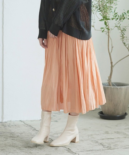 シャイニーな素材感が揺れるたび可愛いプリーツスカート。一年を通して人気のスカートに新色が登場しました。程よい光沢感がコーデを華やかに見せてくれます。細かいプリーツがシンプルながらも目を引くコーデの主役になるアイテムです。ウエストはゴム仕様で着やすく裏地も付いているので,透けることを心配なく気軽に一枚で着られます。足首が少し見える丈感でハイカットのスニーカーにもオススメです。★《お気に入り登録》でお得な情報がいっぱい★・「商品のお気に入り登録」で再入荷通知や、ラストの通知、セール通知も受け取ることができます。・「ブランドのお気に入り登録」で新商品や再入荷など、お得な情報を受け取ることができます!※画像の商品はサンプルとなりますので実際の商品と仕様、加工、サイズが若干異なる場合がございます。※お客様のモニター環境により実際のお色と多少異なる場合がございます。