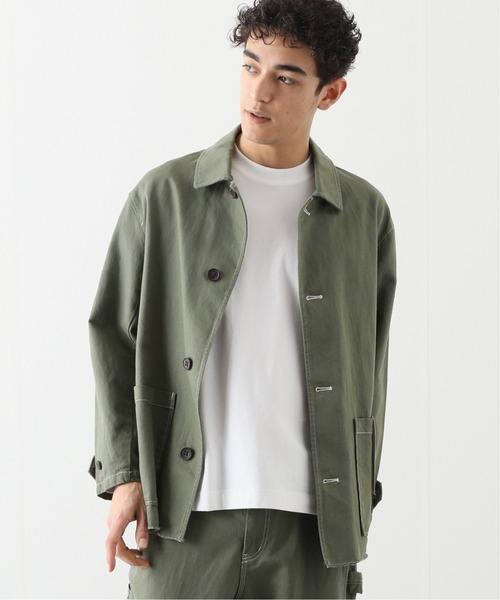 【B.C STOCK】和紙の原料を使用したショートステンカラーコート◎マニラ麻という和紙の原料として使われている素材を使用しています。綿と混紡して糸にして綿や麻よりも軽く吸湿性にも優れたアイテムに仕上げました◎また、マニラ麻を原料とする事でドライな表面感になる為、春夏に適した素材とも言えます。シルエットはステンカラーコートをぶった切ったようなショートコートシルエットです。裾を切りっぱなしにする事で軽さとラフさを演出しています。また、配色ステッチにする事で製品染めしたかのような風合いにしています。アウター性質はビッグブルゾンで、ガバっと着ることのできる春アウターです。ぱっと見、綿カツラギのビッグアウターですが、紙混素材なので、見た目と違って軽く羽織りやすいアイテムです。フレンチワークアイテムにあるような、大きく返った衿がポイントで、存在感のある仕上がりにしています。同素材のパンツとのセットアップ着用もオススメです。商品番号:21030720601510商品名:カミコンカツラギペインター**********************裏地:なし伸縮性:なし光沢感:なし生地の厚さ:厚め**********************※店頭・外での撮影画像は、光の当たり具合で色味が違って見える場合があります。商品の色味は、スタジオ撮影の画像をご参照ください。※取り扱いについては、商品についている品質表示でご確認ください。モデルサイズ:身長:183cm バスト:91cm ウェスト:74cm ヒップ:94cm 着用サイズ:L本体:手洗い可能