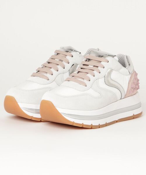 -MARAN STUDS-ナッパレザーとテクニカル・ナイロンスニーカーのヒールには象徴的なピラミッド型のラバーを装着。ダイナミックで超トレンディなテイストに、超軽量の厚底ラバーソールはクッション性に優れ履き心地は抜群。━━━━━━━━━━━━━━━━━━━━━━━━━━【お買いものをお楽しみいただく為に☆】▼商品のお気に入り登録完売カラーの再入荷通知や、ラスト1点の通知、セールの通知も受け取ることができます。▼ブランドのお気に入り登録新商品や再入荷など、いち早くブランドのお得な情報を受け取ることができます。━━━━━━━━━━━━━━━━━━━━━━━━━━【VOILE BLANCHE/ヴォイル ブランシェ】2004年、ヨットセーリングからインスピレーションを得たウルトラライトシューズを作ったことからVoile Blancheはスタートしました。ブランド名であるVoile Blancheはヨットの「白い帆」を意味することから、Voile Blancheは常に前進し、品質と技術を追い求め、情熱を持って新しいクリエーションを繰り広げています。セルビアに自社工房を持ち、靴製造40年以上の経験があり、高い職人技術を擁するVoile Blancheは大量生産品とは一線を画すデザインとクオリティを生み出す信念を持っています。使用するソール以外の素材はすべてイタリア産。アッパーに使用するナイロンはヨットセーリングで使用する帆素材「Dacron」のセールクロスに洗いをかけて採用し、最近ではより選ばれた高級な素材を使用しています。イタリアンラストならではの細身のシルエット、流線型のフォルム、計算され尽くしたソールパターン、また日本人のカカトにもぴったりと合うナローなヒールカップも特徴です。スポーツシーンで発達していく機能性やハイテク素材はジムやスポーツの時のみならず、現代を駆け抜ける現代人へより快適なアーバンライフスタイルを提供します。都会的で洗練されたVoile Blancheのコレクションは多くの著名人を魅了し、クリスティーナ・サリノヴィック、ニナ・スウェス、マリアーノ・ディヴァイオ等多数。現在はPITTI IMMAGINE UOMO、Tranoi Paris、世界最大規模の国際靴見本市であるthe MICAM等に出展。イタリア「La Rinascente」イギリス「Harrods」フランス「Galeries Lafayette」での取扱いがあり、世界中から注目されるシューズブランドである。