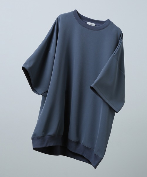 【 極上のトロミタッチ 】スムース タッチワイドPO【素材、機能】極上の滑らかなタッチが気持ちよく触りたくなる素材です。表情もキレイでシワにもなりずらくストレッチ性もあるので着用感が抜群です。肌に纏わり付かない快適なスペックを搭載しています。【シルエット、デザイン】ボリュームがある身幅から裾にかけて絞ったバルーンシルエットが特徴的です。少し長めのハーフスリーブドロップショルダーで抜け感を出しています。オーダーサイズなので通気性にも優れ、盛夏から残暑シーズンにも快適な着用出来ます。一枚でもトレンド感を発揮でき、シンプルなデザインなのでユニセックスでもオススメです。【カラー】トレンド感のあるモカやブルーなどのニュアンスカラーを取り入れ単品はもちろんインナーにも最適です。合わせやすいカラー調整をしているので女性にもおすすめなカラーになっております。【スタイリング】オーバーサイズのドルマンシャツやデザインシャツと合わせたトレンド感溢れる着こなしがおすすめです。ワイドパンツと合わせたリラックススタイルやスリムのイージーパンツと合わせたヌケ感のあるシルエットで今っぽさを強調出来ます。ルーズなシルエットなので先々の1枚着としても活躍します。-----------------------------裏地:なし光沢感:なし透け感:なしポケット:なし伸縮性:なし生地の厚さ:薄手-----------------------------【モデル着用サイズ】身長177cm 着用サイズL