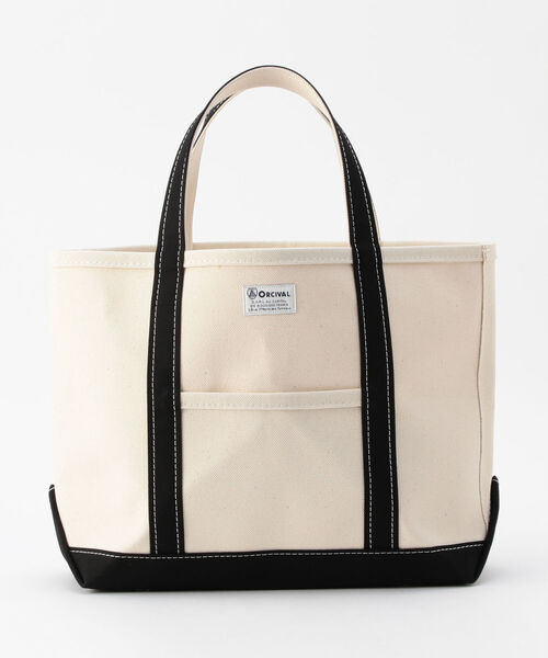 『ORCIVAL』でも定番で人気のトートバッグ。スタイルを選ばないシンプルなフォルムで、毎日のスタイリングも楽しくなりそうなアイテムです。 A4サイズがゆったりと収まる収納部は、広めのマチ幅もポイント。毎日持ち歩くお財布やポーチの他にも雑誌などが収まるサイズ感です。 また、スマートフォンなどをサッと入れておける外ポケットを装備しています。薄手の衣類なども収まるので、普段使いはもちろんお仕事やお出掛けにも活躍してくれます。素材には、24ozのコットンキャンバス生地を使用。 自立するほどのハリ感と硬さのある丈夫な素材は、使い込むほど馴染み風合いを増していきます。 【ORCIVAL/オーシバル】 1939年フランス・リヨンでチャールズ・バルト氏がフランス中部にある小さな村の名前を使ってマリンTシャツのORCIVALブランドをスタート。 1950~60年代にはフランス海軍で制服にとして採用されていたことから由緒あるブランドとして有名になりました。 ※お取扱い上のご注意 アテンションタグを必ずご確認の上、着用又はお取り扱いください。