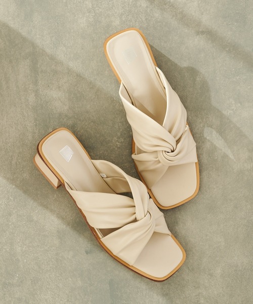 【スクエアトゥとねじりデザインのミュールサンダル】きれいめなシルエットと、シンプルなデザインのミュールサンダル。トレンドのスクエアトゥとチャンキーヒールが、今年らしさを演出してくます。ねじった甲部分はギャザー寄せることで、シンプルながらもアクセントのあるデザインになっています。柔らかいレザー素材で履き心地も良く、かかと部分のインソールもクッション性があるので、長時間履いても疲れにくいサンダルです。・今年らしいスクエアトゥ・コーディネートのアクセントになるねじりデザイン・履き心地の良い柔らかいレザー素材・クッション性のあるかかと部分のインソール■素材甲材: 合成皮革 底材: 合成底※着用、お取り扱いの際は、商品についている品質表示とアテンションタグを必ずご確認下さい。※商品タグに記載されている商品名がWEBでの表記名と異なる場合があります。※画像の商品はサンプルです。実際の商品と仕様、加工、サイズが若干異なる場合がございます。 ※照明の関係により、実際よりもやや明るく見える場合がございます。またパソコンなどの環境により、若干製品と画像のカラーが異なる場合もございます。予めご了承くださいませ。 【お気に入り登録】してお得な情報をCHECK!!・「商品のお気に入り登録」で再入荷通知や、ラストの通知、セール通知も受け取ることができます。・「ブランドのお気に入り登録」で新商品や再入荷など、お得な情報を受け取ることができます。__________________________________________________________
