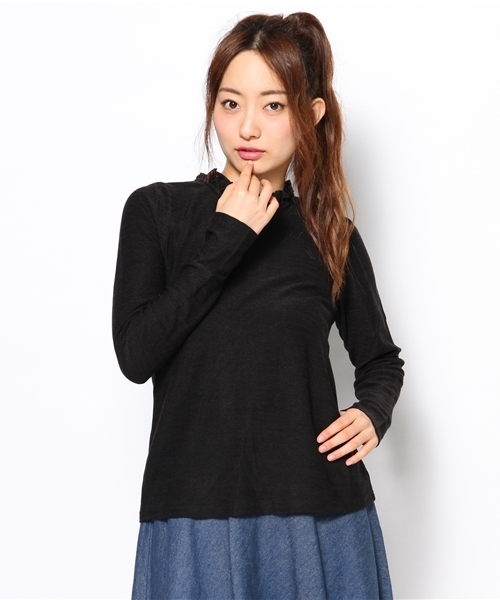 mystic(ミスティック) 襟のレースがポイントのニットソープルオーバー。シンプルなデザインで、ニットやワンピースとの重ね着にもオススメです。