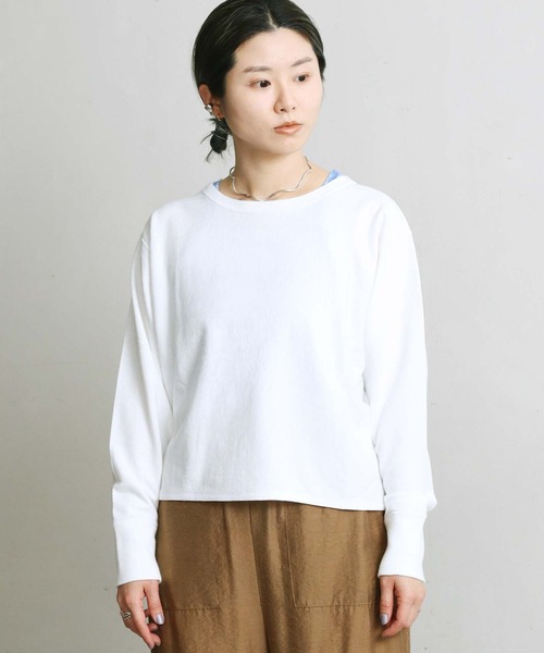 空気によって繊維に撚りをかけた糸を使用。糸の外側に強い撚りがかかっていますが、内側には撚りがかかっていないので、糸に膨らみがあり、着心地はさらりと心地よい仕上がり。その糸を使ってインレイを編みたてました。適度な肉感で、春先、秋、冬のインナーにと長く愛用できます。シロ /アッシュパープル/ クラウド / レモン の柔らかなカラフルカラーパレット。程よくリラックス感のあるコンパクトなプルオーバー。ボリュームのあるパンツにも合わせやすい。製品硫化染めで染め上げ、ヴィンテージムード漂うアイテムに仕上げました。春先に何着ようと迷ったらすぐに手が出る、デイリーアイテム。同シリーズでチュニック【2201CT010211】もあります。洗濯:手洗い可※画像はサンプルです。実際の商品と仕様・加工・サイズなどが若干異なる場合がございます。※撮影画像は、光の当たり具合やモニターの環境により色味が違って見える場合があります。あらかじめご了承ください。※取り扱いの注意については取り扱い表示をよくご確認の上、着用をお願いいたします。
