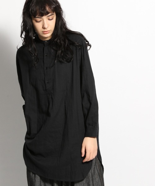 軽やかな春のプルオーバーシャツやわらかく肌触りの良いコットンガーゼ素材を使用した、ゆったりチュニックシャツ。スタンドカラーのプルオーバーデザインに、ヒップをカバーしてくれる後ろだけ長め丈がアクセント。シンプルにデニムと合わせるだけで、大人ナチュラルなスタイルが決まります。【ichi(イチ)】「着て体に馴染み、色あせていくことで自分らしい色に変わっていく服、着続けることが喜びとなる服」九州福岡での生活を拠点にして生み出されるブランド「ICHI(イチ)」。着て洗うことでテキスタイルの表情や風合いの変化を楽しめる一着。生地の変化と同時に、服が自分の体のラインに馴染む心地よさを感じてください。
