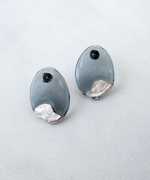 波の揺らぎをイメージしたガラスピアス。ガラスには穏やかな海の水面(みなも)のようなテクスチャーをつけ、シルバー箔とコンビに仕上げました。Glass is heatproof glass made by HARIO.Lemme. のガラス製品は全て HARIO Lampwork Factory の職人の手により一点一点丁寧に制作されております。HARIO 社の耐熱ガラスはシリカ ( 珪砂 )、ホウ砂、ホウ酸、アルミナといった天然鉱物を精製したものを原料をしており、重金属などを一切使わない 100% 天然鉱物から作られています。ガラスの主な成分であるシリカは環境に配慮したオーストラリアのホワイトサンドを使用しています。オーストラリアは環境保護が厳しく、環境サイクルを壊さない持続可能な資源開発を徹底して行っています。ホワイトサンドを採掘する鉱山に自生する木々は保護して育てられ、採掘後はその木々を植樹し、元の木々が茂る山へと戻していくなどの自然と共生する細かな取り組みがされています。ABOUT Lemme.Lemme. [ レム ]シューズデザイナー YUKARI が 2018 年にスタートしたジュエリーブランド。人が着ることで初めて形を成す半立体の洋服、その真逆である完全な立体のジュエリーの追求がフィロソフィー。女性の内なる強さと繊細さを、シルバーとガラスで表現したジュエリーブランドです。自然が織りなす美しい情景、壮大な造形美、神秘的な一瞬の自然現象からインスピレーションを感じデザインに落とし込みます。