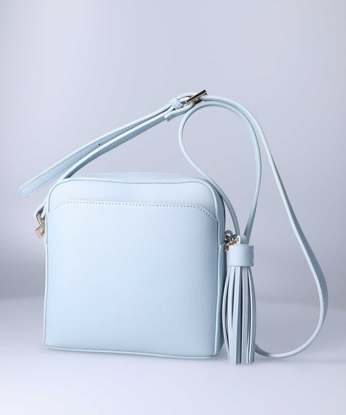タッセルの付属がポイントのスクエア型ショルダーバッグ。少しハリのあるシボ感がある生地を使用し、シンプルながらも高級感のあるバッグに仕上げました。カジュアルなスタイリングのはずしや、きれいめなコーデにも合わせられて万能です。