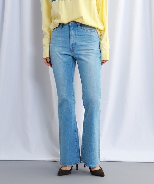 【JET LOSANGELES】14.0OZと敢えて重めのウェイトでトレンドキーワードのフレアラインを提案したデニムパンツ。レトロな印象のポケットディティールとステッチカラーで穿きやすくも差別化を測ったデザインです。腿周りはしっかりシェイプし膝上から広がるラインで女性らしく、スタイルUP効果を演出します。春夏らしい2色のINDIGO展開です。シンプルな定番Tシャツやトップスも一気に鮮度を上げてくれるアイテムです。※ポケット数:横×2、後ろ×2【生地感】しっかりとした手触りのデニム生地です。ノンストレッチを使用することで体のラインを拾わず、ホールドしてくれる効果があります。こちらの商品は主に春に着用いただける商品です。モデル情報:身長163cm B80 W60 H88 着用サイズ:04(M)店舗へのお問い合わせ商品番号:C80-62002●製品寸法:23(XXXS):W63cm H81cm 股下74cm 前股上25cm 渡り幅25cm 裾幅24cm24(XXS):W65cm H84cm 股下74cm 前股上25cm 渡り幅26cm 裾幅24cm25(XS):W68cm H86cm 股下74cm 前股上25cm 渡り幅27cm 裾幅25cm26(S):W70cm H89cm 股下75cm 前股上26cm 渡り幅28cm 裾幅25cm27(M):W73cm H91cm 股下75cm 前股上27cm 渡り幅29cm 裾幅26cm28(L):W75cm H94cm 股下76cm 前股上27cm 渡り幅29cm 裾幅26cm備考: