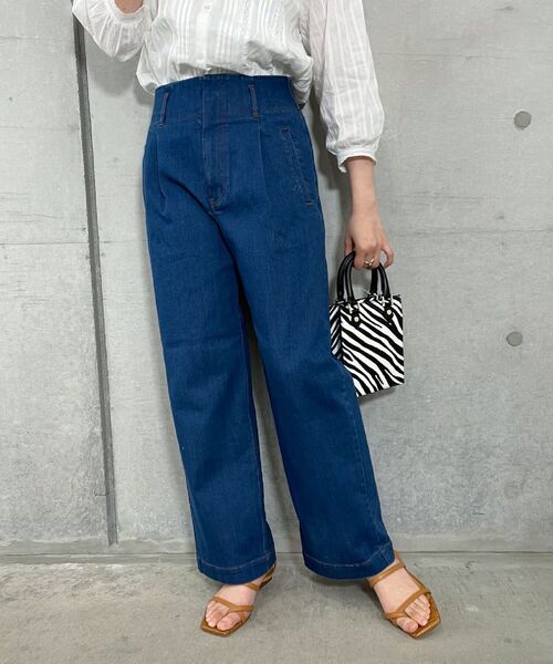◇fredy emue◇【2021SS】女性らしいハイウエスト仕様のセミワイドデニムパンツ。●立体的なワンタックデザインとバックギャザーで腰回りに程よくゆとりのあるデザイン。●オールシーズンのコーディネートに馴染む濃いめの色味もポイント。●タイトなトップスを合わせてウエストを目立たせるのはもちろん、今季らしくルーズなトップスを合わせるのもオススメです。●お取扱い上のご注意●*アテンションタグを必ずご確認の上、着用又はお取り扱い下さい。*店頭及び屋外での撮影画像は、光の当たり具合で色味が違って見える場合があります。商品の色味は、スタジオ撮影の画像をご参照下さい。*商品画像に関しては出来る限り忠実に表示出来るよう努めておりますが、お客様がご利用のモニターの設定及び特性により、実際の商品と比較し色味に若干の誤差が生じる場合があります。*カラー:モデル:遠藤瞳 H167 B78 W58 H83の画像が実際のお色味に近いものになります。◇商品のお気に入り登録◇【お気に入りに登録 ♡マークをクリック!】を是非ご活用ください。 再入荷の通知や、ラスト1点の通知、セールの通知がいち早く届きます。◇ブランドのお気に入り登録◇新商品や再入荷など、いち早くブランドのお得情報が届きます。