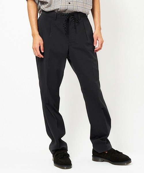 LOOSE JKTとセットアップの撥水機能付きの素材を使用したパンツ。ウエストはリフレクター入りのスピンドルで調整可能です。セットアップでの着用はもちろん、単体でも十分にサマになるシルエットの綺麗なアイテム。