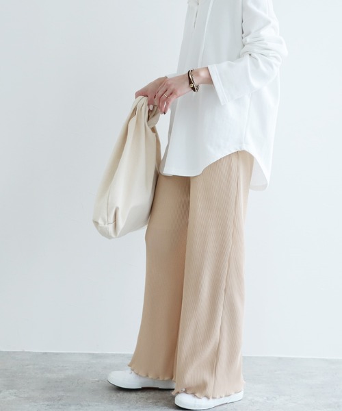 絶妙なゆるっと感が大人可愛さをプラス ■ポイント 裾のメローデザインが女性らしさを引き立てます。 ウエストは総ゴムで快適な履き心地◎ ウエストサイズは紐で調節可能です! 紐の端にある金具がアクセントに♪ プリーツ加工で縦のラインを強調し、 スタイルアップ効果も。 ■ディティール なめらかな肌触りの薄手プリーツ生地。 軽い着心地で、リラックスして着用できます! ほんのり光沢感のある素材で、揺れるたびに華やかな 雰囲気を演出。 ■コーディネート ゆったりシルエットのパンツで、おうち時間にも オススメです♪ 長めの着丈のシャツやカットソーと合わせると こなれた印象に。 合わせるアイテムによって大人っぽくも、大人可愛い 雰囲気にも合わせられる万能パンツです♡ ■■■もっとお買物をお得にお楽しみいただくために■■■ 【商品のお気に入り登録】再入荷のお知らせや、ラスト1点のお知らせ、セールのお知らせを受け取ることができます! 【ブランドのお気に入り登録】新作商品や完売アイテムの再入荷情報など、お得な情報をいち早く受け取ることができます! ※サイズは現物をスタッフが平置き採寸したものになります。 ※モデル着用写真は撮影環境により、多少実際のカラーと異なる場合がございます。 ※生産時期により若干の色ブレやサイズの変動が生じる場合がございます。 生地の素材や種類によってシワになりやすいもの、または同じ素材でも製造時期によって異なる場合がございます。予めご了承くださいますようお願いいたします。 ※アイボリーにのみ裏地が付いております。