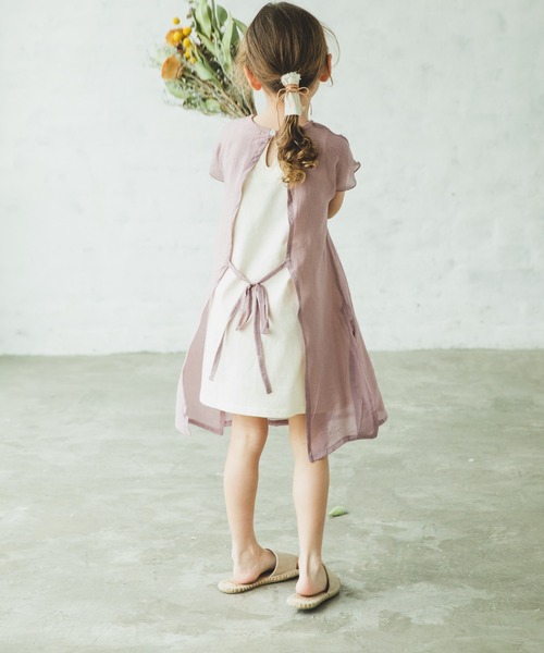 透け感のあるシアー素材が春夏のスタイルにぴったりのワンピースです。ノースリーブのTシャツ素材にシアー素材をドッキングした透け感を楽しめる大人顔負けのワンピース。バックスリットとリボンデザインでより女の子らしく仕上げました。透け感が楽しめるレイヤードデザインは春夏のお出かけコーデにぴったりのアイテムです。生産時期により色味が若干異なる場合がございます。ご了承ください。