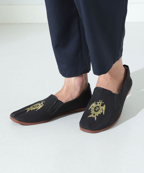 足元にアクセントをもたらすひと品元々カジュアルアイテムであるカンフーシューズを、B:MING by BEAMSらしくクリーンなテイストに仕上げました。イメージソースは刺繍が施されたドレススリッポンです。金糸を使用した上品な「王冠」と「ボールドイーグル」モチーフの手刺繍柄が別注の証。足に馴染むソフトな風合いの布地に柔らかなラバーソールを合わせた仕様。外履きとしてはもちろん、踵を内側に折り返して室内履きとしても使用可能です。【シューズ商品の発送に関して】包装紙破損、箱破損につきましては商品に不良が無い場合に限り出荷させて頂いております。予めご了承ください。※光の当たり具合やパソコンなどの閲覧環境によって、実際の色味と異なって見える場合がございます。予めご了承ください。※商品の色味は商品単体で撮影した画像をご参照ください。