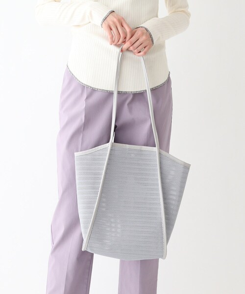 【デザイン】スポーティーなメッシュ素材をタウン仕様にデザインしたトートバックです。合皮のパイピングでシンプルに縫製し、透け感で夏らしさを表現しました。※ポケット数:内側×1店舗へのお問い合わせ商品番号:C12-02112●製品寸法:00:高さ35cm 幅(上部)35cm 幅(下部)26cm マチ13cm 持ち手上がり32cm備考:重量:約250g