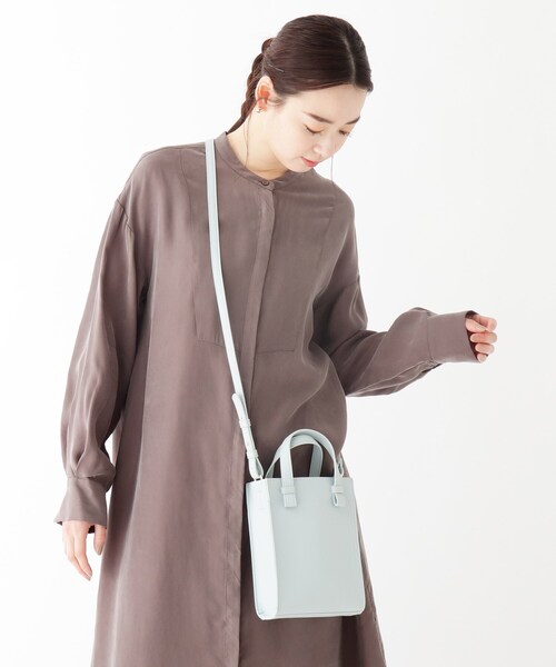 【STORY5月号掲載】【美人百花4月号掲載】【デザイン】表面感のある軽量ソフト合皮を使ったスクエアフォルムのミニショルダーバッグ。持ち手のベルトデザインに配色のステッチ糸でアクセントをきかせています。携帯やお財布など必要なものはしっかりと仕舞っていただけるサイズ感です。サイズ調整ができる取り外し可能なロングショルダー付。トレンドのタテガタフォルムで、お出かけはもちろん、サブバッグ2個持ちで通勤スタイルにもお勧めのミニショルダーバッグです。同素材で、ミドルサイズトートバッグ(C71-12031)もございます。※ポケット数:外側×1店舗へのお問い合わせ商品番号:C71-12030●製品寸法:00:高さ21cm 幅(上部)16cm 幅(下部)16cm マチ6cm 持ち手上がり7.5cm 付属ショルダー対応サイズ120~136cm備考:重量:約230g