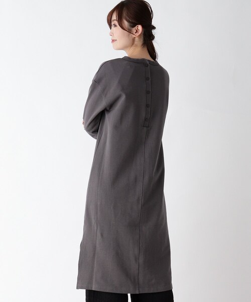 【デザイン】ヘンリーネックがポイントになったバックショットが印象的なワンピース。ドロップショルダーのゆるっとしたシルエットに、センターシームのデザインが効いています。サイドのスリットで長めの丈でも足さばきバッチリなうえ、レギンスやカットパンツとも相性◎【生地感】デイリーに取り入れやすい、着心地良好なコットン(綿)100%素材。こちらの商品は主に春に着用いただける商品です。モデル情報:身長166cm B83 W58 H85 着用サイズ:38(M)店舗へのお問い合わせ商品番号:763-52206●製品寸法:38(M):着丈102cm B95cm 袖丈50cm 肩幅49cm W96cm H103cm40(L):着丈104cm B98cm 袖丈51cm 肩幅50cm W101cm H107cm42(LL):着丈106cm B104cm 袖丈52cm 肩幅52cm W106cm H111cm備考:
