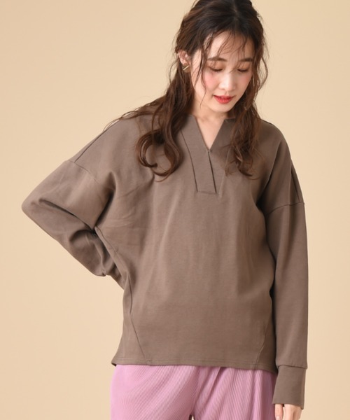 綺麗なVネック開きがポイント 大人シンプルスエット大き過ぎず計算された絶妙なサイジングで作られたカノコスエットです。裏表の両面使用できる素材で、袖下から脇にかけてカノコ側を表に使用しアクセントをプラスしています。女性らしさが演出できるVネックがポイントで、寒いときは春らしいシアー素材のハイネックカットソーを合わせたレイヤードスタイルも今季らしく素敵です。*さりげない後ろ下がりヘムと程よいドロップショルダーで旬なリラックススタイルに。*後の裾にタックを入れ自然に生まれる丸みのあるシルエット。*カノコ組織の柔らかい素材で仕上げ、着心地も抜群◎*カジュアルなアイテムながら女性らしく着回せる万能タイプ。■取り扱いご自宅でイージーケア(手洗い)ができます。INTERPLANET/actuel(インタープラネット/アクチュエル)・conceptいつだって私らしく、私自身のスタイルが決まる。。。時代や年齢に媚びない『らしさ』を纏って生きる女性へ。旬なベーシックと抜け感のあるカジュアルをMIX。そんな大人カジュアルコーデを提案します。・お気に入りの登録についてショップ、ブランドのお気に入り登録でクーポンやタイムセールの通知などお得な情報を受け取ることができます♪また、気になるアイテムのお気に入り登録でセールや再入荷の通知など受け取ることができます。