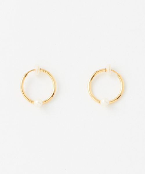 大人気の装飾フープシリーズより、パールが斜め向きに付いた新作のフープピアス(イヤカフ)細線1.7cm 一見ピアスのようにも見える、フープタイプのイヤリングは正面から見るとパールが飛び出るように見える可愛いデザイン。 耳たぶに着けるほか耳のくぼみに着けても素敵です。シンプルフープとの重ね付けもお勧めです。 【petite robe noire/プティローブノアー】 プティローブノアーは、デザイナー阿部好世が2009年に設立したコスチュームジュエリーとブラックドレスを中心としたスタンダードウェアのブランド。時を重ねても揺らぐことのないクラシックな美しさを目指して、女性のシンプルな佇まいを彩るコスチュームジュエリーを提案しています。抽象画やアールデコ、アールヌーボーの時代背景からのアイデアと「古いものと新しいものをつなぐ」という考えのもと、日本の職人による「失われつつある制作技法」を尊重し、一点一点丁寧に制作しています。