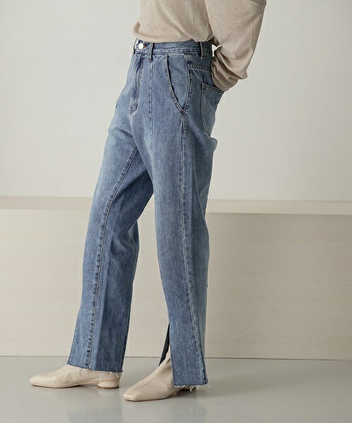 【今年らしいフロントスリットが目を惹く万能デニム】 定番アイテムのストレートデニムにフロントスリットを施し、今年らしいエッセンスをプラス。太過ぎず細過ぎずの絶妙なシルエットは美脚効果も期待できます。 POINT ・シンプルコーデに映えるフロントスリット ・美脚効果が期待できるシルエット ・取り入れやすいベーシックなカラーリング COORDINATE チュニックやワンピースなど、ロング丈のアイテムとのレイヤードにも最適。着回し力が高いので色違いでお持ち頂いても◎ ----------------------------- 透け感 : なし 伸縮性 : ややあり 裏地 : なし 光沢 : なし 生地の厚さ : 普通 デザイン : スタンダード ----------------------------- ※この商品は、摩擦や汗、雨などの使用条件等により、色落ちや他の物への色移りの可能性がございますのでご注意ください。 ※淡色物は、紫外線や湿度の影響で黄変することがあります。予めご了承ください。 ※その他お取り扱いに関しましては、商品に付属のアテンションタグをご覧ください。 ※モデルの着用画像の場合、光の当たり具合により、実際の色味と異なって見えることがございます。色味は、商品単体の画像をご参照ください。