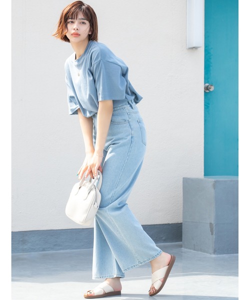 大人のカジュアルスタイルに最適なデニムワイドパンツ ワイドなシルエットがこなれた雰囲気を演出するデニムパンツ。フロントはすっきりとさせながらもバックゴムのウエストデザインで、穿き心地の良さも魅力的なポイントです。どんなアイテムとも合わせやすく、大人のカジュアルスタイルに最適なひと品です。
