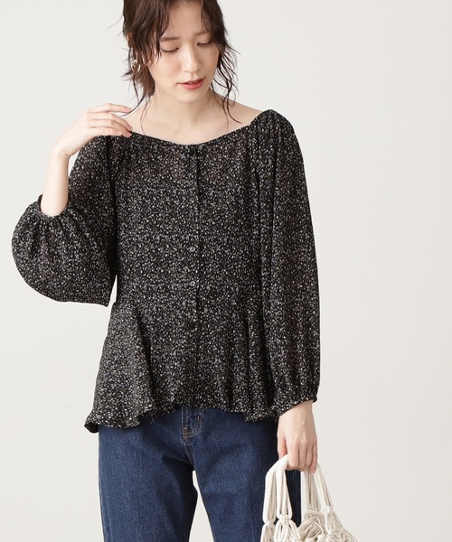 さらりとした軽い着心地の小花柄プリントブラウス。デコルテが綺麗に開いたネックラインにふんわりとした袖とのバランスが女性らしい印象です。腰まわりをカバーする丈感なので、裾をアウトしてボトム合わせができます。デニムカジュアルにもシンプルなパンツとの合わせできれいめなコーディネートも楽しめます。