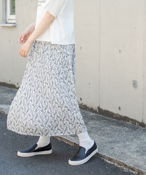 ピュアルセシン 2021 Spring collection 【Effortless garden】 ピュアルらしさでもある天然繊維の素材感、丁寧な生活の中に取り入れてほしい着心地 心弾むファッションを続けていけるように地球の恵みをテーマに変わりゆく時代にあったSSの提案 ◇イージーな着心地なのに一枚でサマになる!上品な大人の花柄プリーツスカート◇ 花柄プリントのプリーツスカートがWEB限定で登場。 細かいプリーツで落ち感のある生地の為、分量感がありながらも 横に広がることなく、すっきりとしたシルエットを演出し 甘くなりすぎないスカートに仕上げました。 ホワイト×ブラックの花柄配色が大人可愛いポイント。 トップスにベーシックなカラーを合わせても華やかさが残り、 カラーアイテムを持ってきても、纏まり感があるコーディネートが可能です。 ウエストは総ゴムなので、リラックス感のある履き心地も魅力。 身体に沿うシルエットですが、ボディラインを拾わず上品に着ていただけます。 初春はニットやスウェットを合わせて、 春夏にはカットソーを合わせてとロングシーズン着用していただけます。 カジュアルから上品なきれいめコーデまで、マルチにこなすスカートです。 ・シーズンレスで着回し力抜群 ・大人の女性が楽しめる細かい配色花柄 ・歩くたびに揺れる細かいプリーツがフェミニンな印象 ・トレンド感のある着こなしから、ベーシックな着こなしも◎ ============================== 透け感:なし(ブラック)/ややあり(ホワイト) 裏地:ホワイトのみあり (ブラックは裏地なし) 伸縮性:なし 光沢感:ややあり 生地の厚さ:薄手 洗濯:手洗い可能 【スタッフコメント】 年齢:30代後半/身長:155cm/普段着用サイズ:Mサイズ サイズ感: ウエストは総ゴムなので窮屈感はありません。 ひざ下丈ですが、足首は見えるため引き摺る事無く履くことが出来ました。 Iラインシルエットですが、 身体のラインを拾わないので、体型を気にせずに楽しめそうです。 素材感: 肌当たりは滑らかでチクチクする感じはありません。 薄手ではありますが、透け感は強くなく、 シワも気にせずに履けるのでデイリーに活躍してくれそうです。 ============================== ※撮影場所やお使いのモニター環境により若干お色味が異なる場合がございます。特にロケの撮影では明るく見える傾向にございます。 ※予約商品はサンプルで撮影をしております。若干の仕様が変更になる場合がございますので予めご了承の上ご注文くださいますようお願いいたします。