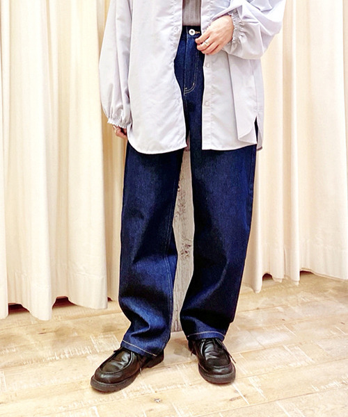 ベーシックなストレートシルエットで着回しやすいフルレングスパンツ。綿100%素材のさらっとした穿き心地の良さも魅力的なポイントです。ハイウエストタイプで脚長効果も期待大◎ワードローブの定番アイテムとしても重宝すること間違いなしです。