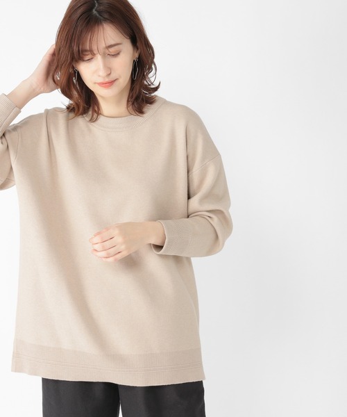 ゆったりとしたサイズ感がトレンドのニットプルオーバー。リサイクルポリエステルをブレンドしたサティナブル素材を使用し、環境にも優しいアイテム。襟に振り柄や、袖リブ裾リブに入ったラインがボーイズ見えポイント。裾からTシャツを覗かせたレイヤードコーデがおすすめです。