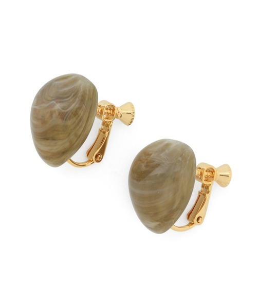マーブル調の色目が柔らかい印象の、カボションイヤリングです。ブルー、アイボリー、カーキの落ち着きのある3色展開。シンプルなスタイリングに差し色として取り入れて頂けます。※マーブル模様は商品によって若干個体差がございます。■ピアスタイプもございます(商品番号:SHZ31060)