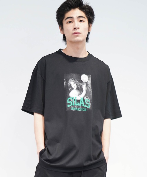 【デザイン】レオナルドダヴィンチの絵画を思わせる半袖Tシャツ。背中にもSILASアーチロゴのプリント入り。どこから見ても印象的な一枚です。ホワイト、ブラック、ネイビーの、カジュアルスタイルに使いやすい3色展開!ベーシックなシルエットなので、春夏シーズンのトップスとしてはもちろん秋冬シーズンのインナーとしても活躍できます。【スタイリング提案】遊び心のあるデザインなので、ワークパンツと合わせたストリートコーデがおすすめ!デザインはインパクト大ですが、他アイテムをシンプルなアイテムにすれば難なくスタイリングできます〇【スタッフ着用コメント】SILAS原宿 STAFF 身長:172cm***********年齢:20代前半/身長:172cm/着用サイズ:XLサイズ感:定番のサイズ感でやや丈長めです。着心地:綿素材なので着やすく、夏に使いやすそうです。オススメコーデ:前後にプリントがあって夏にぴったりなインパクトのあるアイテムなので、ショーツに合わせてスタイリングするのがおすすめです!**************************・透け感:なし(白のみややあり)・裏地:なし・光沢:なし・生地の厚さ:普通・伸縮性:あり【取り扱い注意事項】プリント部分は永久的なものではなく、長期間の使用・摩擦により、徐々に剥がれや欠損が生じます。※画像の商品は光の照射や角度により、実物と色味が異なる場合がございます。また表示のサイズ感と実物は若干異なる場合もございますので、予めご了承ください。※画像の商品はサンプルとなります。実際の商品と色味、仕様、加工、サイズ、素材等が若干異なる場合がございます。◎商品のお気に入り登録をおすすめします。完売カラーの再入荷やラスト1点の通知を受けることができます。◎予約アイテムが販売開始の際も通知を受け取ることができます。