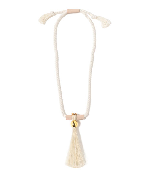 ニュアンスをプラスするひと品フリンジデザインが印象的なネックレスが登場。普段のスタイリングにプラスすることでこなれ感を演出します。ゴールドパーツとマットなレザーの組み合わせは、大人の女性にぴったり。ロングデザインで、シンプルなスタイルのポイントにしてお楽しみいただけます。【アクセサリー・小物雑貨の取り扱いについて】・貴金属は、体質により、かゆみやかぶれを生じる場合があります。・皮膚に異常を感じた場合は直ちにご使用を止め、専門医にご相談下さい。・家事やスポーツ、就寝時や乳幼児の世話をする時などは、身体に危害を及ぼす場合がありますので着用を避けて下さい。・熱伝導が高いので、高温の場所や寒冷地での着用は火傷や凍傷の原因となりますので着用を避けて下さい。・乳幼児が誤飲しないように、保管は十分にご注意下さい。FUMIE TANAKA / フミエタナカ2020年春夏よりデザイナー田中文江による"THE Dallas"を改名し、新ブランド"FUMIE=TANAKA"を開始。デザイナー田中の世界観をフィルターを通し、解放された自然体で自分の思う感性を表現しています。自分を知り自然体に居心地を感じる大人に向けたブランドであり、革小物や遊び心がある異業種とのコラボレーションも特徴の1つです。