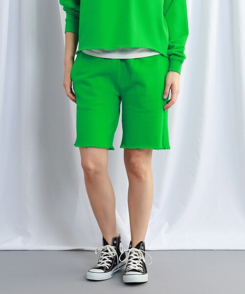 【JET LOSANGELES】10ozのややしっかりした素材感のスウェット生地ショートパンツです。ショートパンツでもやや長めの設定にしているので大人でもチャレンジの出来るサイズ感に拘っています。ウエストはわざと大きめ設定にしているので、ウエストの紐を強めに結んでギャザーを強く出してはいてもらうのがお勧めです。同素材でトップス(C80-12100)がございます。セットアップスウェットをだらしなく見せなくするポイントとして、レイヤードをする、小物を使ったコーディネートをする、アクセサリーをポイントで使うのがお勧めです。※ポケット数:横×2、後ろ×2【生地感】特殊な加工を施しているため1枚ずつ個体差があるのが特徴です。※裏地なしこちらの商品は主に春に着用いただける商品です。モデル情報:身長163cm B80 W60 H88 着用サイズ:04(M)店舗へのお問い合わせ商品番号:C80-62100●製品寸法:04(M):W67cm H98cm 股下20cm 前股上27cm 渡り幅29cm 裾幅27cm備考:
