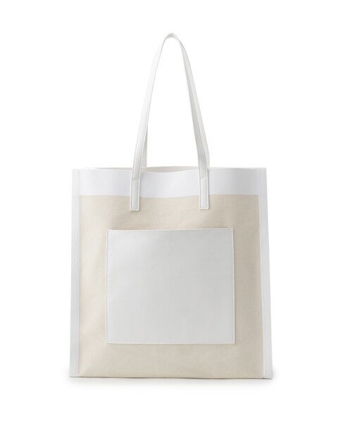 【JET LOSANGELES】キャンバス×フェイクレザー使いで、カジュアルな中にきちんと感をプラスしたトートバッグ。しっかりとマチを取ったデザインで収納力もあり、A4書類なども難なく収まります。トリミングには特殊なプリントを用いており、フラットな仕上がりになっています。※ポケット数:外側×1 内側×1店舗へのお問い合わせ商品番号:C80-02007●製品寸法:00:高さ38cm 幅(上部)36cm 幅(下部)36.5cm マチ14cm 持ち手上がり24.5cm備考:重量:約430g