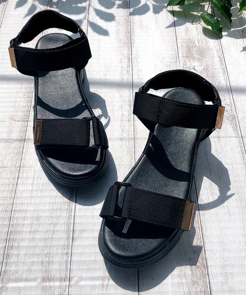 スポーティーな厚底ソールが今年らしいボリューム感たっぷりのスポサンです。スタイルアップも簡単にできます♪ダブルベルトで足をしっかりホールドしてくれるので安定感がバツグン。パンツはもちろんスカートと合わせて女性らしくスポーツミックスコーデを楽しむのも◎春や秋にはソックスコーデもオススメです!【サイズ】S (約22.5-23)M (約23.5)L (約24)LL (約24.5)ヒールの高さ:約4.5cm※ATTENTION※ ◇汗や雨などの湿気、摩擦などによって色落ちし、靴下などの衣服に着色する可能性がございます。ご使用には十分にご注意ください。 ◇装飾品は取れやすいので、お取扱い・引っ掛けにご注意ください。 ◇商品画像の撮影は室内で行われているため、ライティングにより実物と色味が少し異なる場合がございます。 ◇商品のお気に入り登録がおすすめです! 再入荷などの通知を受け取ることができます。