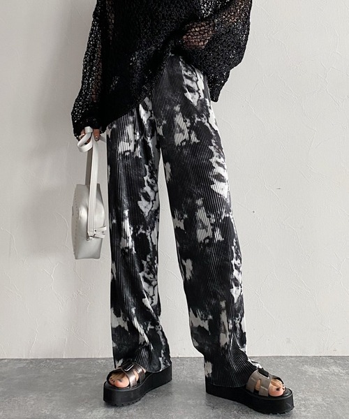 【PAGEBOY CORE】媚びない、自立した『オンナマエ』な女性に向けたファッション。COOLでMODEなスタイルを、今の時代と気分に合わせて提案。マーブル調にアレンジしたオリジナルプリントが特徴のルーズスラックスです。履き心地にこだわったウエストゴム仕様となっています。全体的に細かいプリーツ加工を施しているので、柄も立体的に見え、よりモードな印象に仕上がっています。 ※撮影環境により、光の当たり具合で色味が違って見える場合があります。あらかじめご了承下さい。