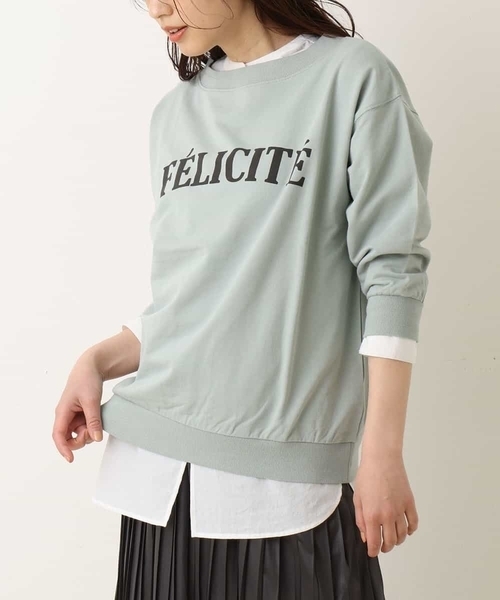 ◆トレンディなスウェットで洒落見えカジュアルに◆トレンドのスウェットトップスは、程よいオーバーシルエットとボートネックデザインが、大人女性も取り入れやすく、今季らしい甘辛ミックスなカジュアルスタイルにぴったり。■デザイン ゆるっとしたオーバーシルエットで、程よく身体から離れたボリューム感が大人も着こなし易く、これからの季節にも使いやすい袖丈と、 ボトムを選ばず着合わせの効く着丈にしました。 女性らしさのあるボートネックで、カジュアルが苦手な方もトライしやすい1着です。 袖口リブ使いはタックアップしやすく、春になったらタックアップしてこなれ感の出る着こなしを。肩周りのゆとりとボリューム感にこだわり、着用した際に単なるトレーナーとは違う印象に。 プリントは柔らかい印象のアーチロゴで、「幸運」のメッセージで気分も晴れやかに♪ ■素材 毛羽感のない綺麗な表面感が、品の良いカジュアルを演出。 薄手なのでこれからのシーズンにも活躍します。一枚で着ても透けないのが嬉しいポイント。 洗濯機で洗えてデイリーに使いやすいです。 ■おススメコーディネート サテンやシアー素材のボトムと合わせて、素材のコントラストを楽しむのが今年らしくて◎ 女性らしいボトムを合わせる事で、甘辛ミックスのバランスが取りやすいです。