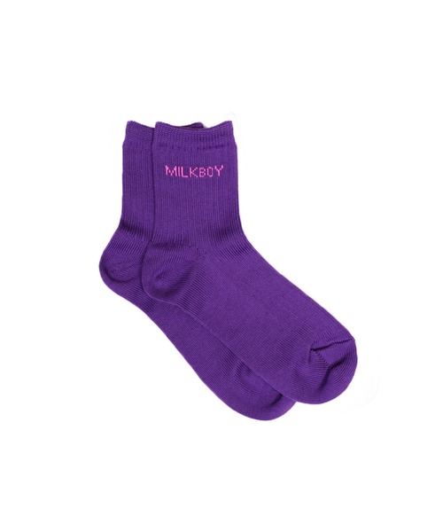 スタンリーキューブリックの映画「時計じかけのオレンジ」の主人公アレックスがCorova milkbarでミルクを飲むシーンにインスパイアされる。MILKの白という色は何色にでも染まれるという特徴もある。MILKBOYというフィルターを通し、MILKの持つ白さをいろいろなカラーに染めていくのにピッタリなネーミングであった。クールなブラックユーモアに、時としてファンタジックな要素を融合したエッジの立ったグラフィックやデザイン。これを日常的アイテムに落とし込むストリート性とバランス感覚を大切にしている。