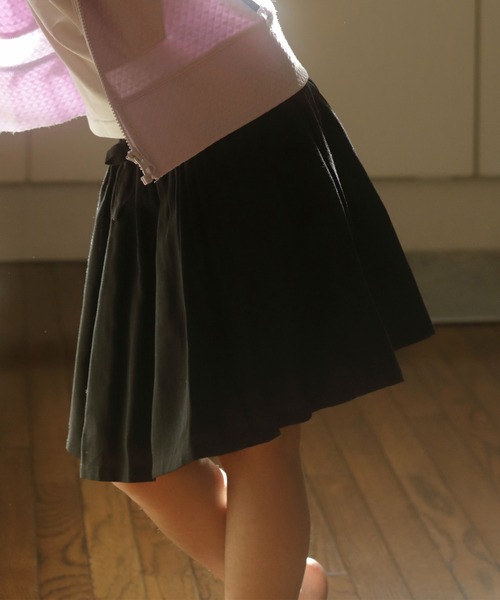 ゴムのハイウエストにリボンがポイント/生地ボリュームたっぷりのふんわりシルエット/裏地・ポケット付き