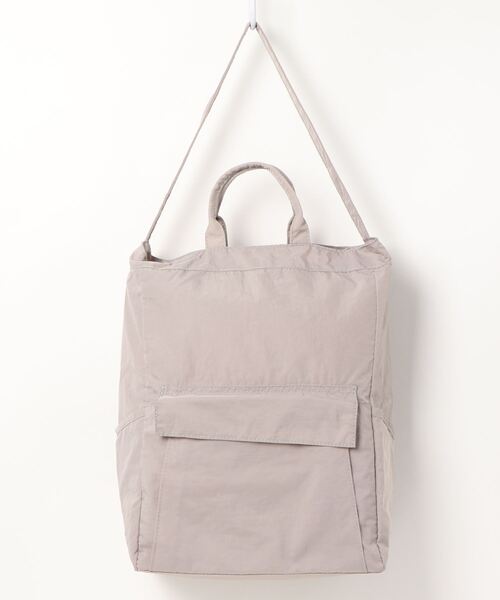 軽やかなナイロン素材で仕立てたトートバッグ。フロントをはじめ、両サイドや内側にもポケットを備えた機能性も魅力的◎ショルダーと手持ちの2種類のハンドルが付いているのも便利です。薄手なのでコンパクトに折りたたむこともでき、エコバッグとしてや、トラベルシーンにも活躍してくれます。