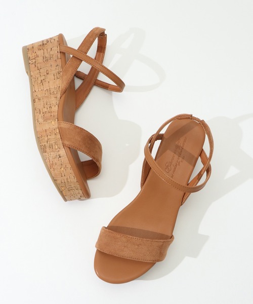 ストラップ付きで、コルクヒールで季節感のあるサンダル。高反発クッションを内側に使用しました。抜け感のあるデザインが魅力。ヒールは5.5cmありますが、プラットフォームのため安定感抜群です。