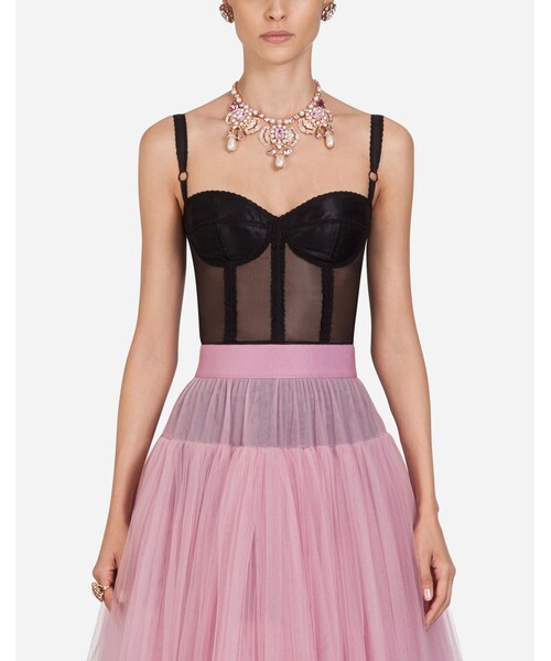 The iconic Dolce&Gabbana top is made of corsetry fabric and is perfect for bringing out the sensuality of the neckline:• Sweetheart neckline with straps • Back closure with zip • The model is 175 cm - 68.9 inches tall and wears a size 40 IT• Made in Italy