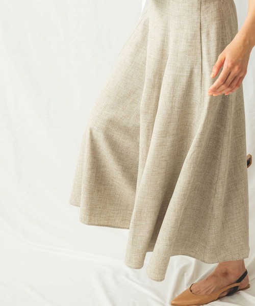 麻のような、ナチュラルな風合いが特徴のフレアパンツです。スカートライクなボリュームのあるシルエットが特徴的。ウエストにはギャザーを施して、フィット感を高めました。付属した共布のリボンも目を引くポイント。サイドのファスナーにより着脱もしやすくデザインしています。上品な大人カジュアルにおすすめのアイテムです。・裏地あり・カラー展開はブラック(黒)、ベージュ・サイズ展開は1(M)9号・3(2L)13号