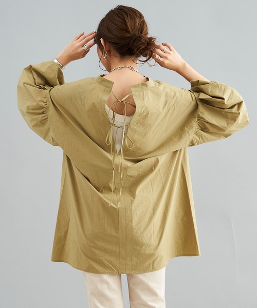 \バックデザインに注目!!のデザインブラウス/ ボリューム感のあるバルーンスリーブとバックリボンがフェミニンな印象に仕上げてくれるブラウス。 今期トレンドのボリュームスリーブは、袖口がゴム仕様になっている為、無造作にプッシュアップするとこなれ感がアップしておすすめです♪ゆったりとしたシルエットなので、気になる体型も可愛くカバーできるのが嬉しいポイント。ヒップもすっきりとカバーしてくれます。細身のパンツやフレアパンツなどに合わせて頂くとバランス良くまとまります。 ********************* ・バックスタイルが一番のポイント ・袖口がゴムになっているので、プッシュアップもしやすい! ・体系カバーも叶えてくれるオーバーなサイズ感 ********************* 【 ♥ をクリックでお得な情報をお知らせいたします 】 〈 商品のお気に入り登録 〉 お気に入りアイテムのお値下げ・再入荷・在庫ラスト1点など通知を受けることができます。 〈 ブランドのお気に入り登録 〉 DOUDOUの新商品や再入荷、セール、クーポン配布などお得な情報を受けることができます。 -------------------------------------- ※ 掲載画像の商品の色味は、 撮影場所や光の当たり具合などにより色味が異なって見える場合がございます。 また、お客様のお使いのPC・スマートフォン等のモニター環境などにより色味が異なって見える場合がございます。予めご了承の上ご注文ください。 ※着用、お取り扱いの際は、商品についている品質表示とアテンションタグを必ずご確認下さい。
