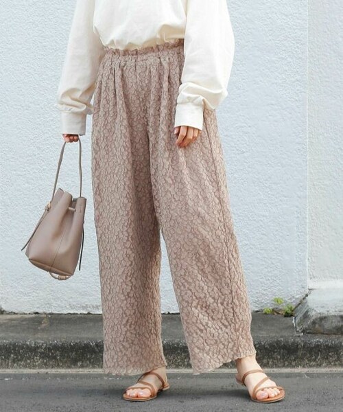 花柄のレースを使用した総レースパンツ。 取り入れるだけで春らしく、シーズンムードを高めてくれます。 さり気ないタックとゆとりのあるシルエットで抜け感を演出。 ブラウスやチュニックと合わせた女性らしい着こなしがおすすめ◎ デイリー使いからお出かけまで着回せる1枚です。 ウエストはゴム仕様で快適な着心地です。 裏地付きなので安心して穿いていただけます。 繊細な花柄レースで華やかさをプラス。 裏地はレーヨン素材で滑らかな肌触りです。 - - - - - - - - - - - - - - - - - - - - - - - - - - - - - - - - - 透け感:なし 裏地:あり 伸縮性:なし 光沢感:なし - - - - - - - - - - - - - - - - - - - - - - - - - - - - - - - - -