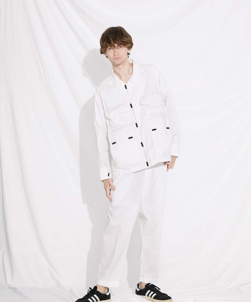 ■material毛羽の少ない特殊紡績糸コンパクトヤーンを使用し、高密度に織り上げた、クリアな表面感が特長のウェザークロスです。緯糸に形状回復性の優れたSOLOTEXを使用しており、ハリのある風合いを保ちながら、軽さとストレッチ性を兼ね備えた素材です。また、染料顔料加工を施すことで製品洗い後にフェード感がでて製品染めをしたようなナチュラルな表情が生まれます。(Whiteは染料顔料加工していません。)■designバラックドレストラウザーから着想したウエストゴム入りのトラウザー。深めの股上が特徴的なワンタックテーパードシルエット。<特殊製品加工のご注意> (製品バイオウォッシュ) この製品は独特(製品は一点一点多少表情が違います)な色目(風合い)を出すため製品で特殊な加工をしております。製品によって多少の寸法差がありますのでご了承ください。
