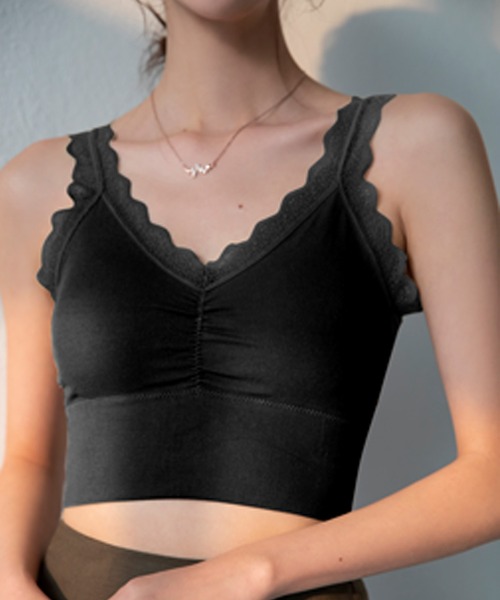 トレンドのレイヤードスタイルに欠かせない着心地柔らかなリブ編みのミディ丈レースストラップブラトップ。ストレスフリーのカップ付きインナーは、リラックスシーンにピッタリなだけでなく、魅せブラとして、お出かけシーンでも活躍します。 リブニットのホールド感で着心地は快適。カジュアルなトップスとのレイヤードスタイルにピッタリです。 首元はデコルテをきれいに見せるVネック。ベーシックな形なので、トップスとのコーディネートもしやすいのもポイント。 背中部分が大胆に開いたバックオープンキャミは、ヘルシーな肌魅せトップスとの相性も抜群! トレンドのシアートップスやワイドシャツとレイヤードすれば、オトナの抜け感漂うお出かけコーデの完成です! ちらりと覗いてもいやらしさを感じさせないレースの縁取りでデイリーに着回せます。 ミディ丈ブラトップなので、いつものブラとおなじ感覚で着用可能。 マタニティウェアやスポーツウェアとしてもおススメの1枚。