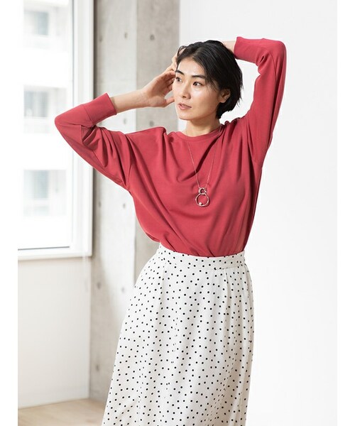 着回しのきくシンプルなデザインに、バックZIPとスライダーに通したグログランテープがポイントのプルオーバー。 着丈に前後差をつけることでフロントのみのインスタイルもしやすく、様々なボトムに合わせやすい1枚です。 軽量でなめらかな肌触りとストレッチ感があり、シワになりにくく、着回しがしやすいアイテム。 ベーシックからコーディネートのポイントになるカラーまで展開があります。 ヒップが隠れる丈とリラックシーなシルエットでお出かけにもおうち時間にも活躍してくれる1着です。 【商品取り扱い上のご注意】 ■手洗い可能。 ■アイロンはあて布をしてかけて下さい。 サイズ:肩幅:58.5cm バスト:112cm 袖丈:46cm 着丈:68cm 素材:ポリステル:95% ポリウレタン:5% 原産国:中国製