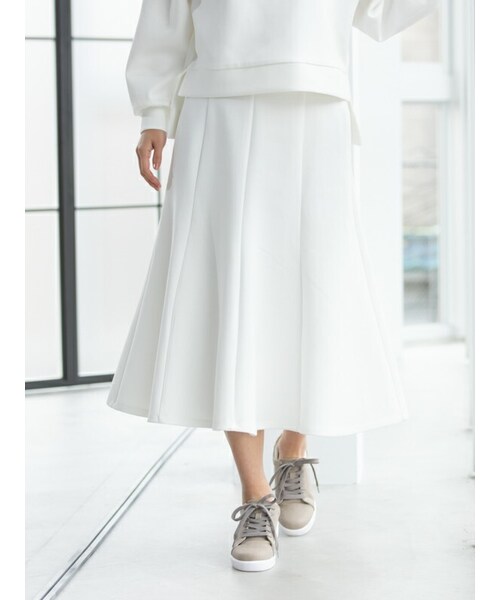 伸縮性のあるダンボールポンチを使用し、きちんと感とスポーティーさを合わせ持つスカート。 贅沢に生地を使用し、たっぷりフレアのレディなシルエットに仕立てました。 シワになりにくく、ホームケアもできる優秀アイテム。 同生地のバックZIPプルオーバー(1R15-01167)とセットアップ風にコーディネートして着るのもおすすめです。 ※セットアイテムではございません。 ※バックZIPプルオーバー(1R15-01167)ベージュのみ若干上下で色味が異なります。あらかじめご了承ください。 【商品取り扱い上のご注意】 ■手洗い可能。 ■濃色製品は、白・淡色製品と分けて洗って下さい。 ■濡れたままで長時間放置しますと衣類への色落ちの恐れがありますので、ご注意下さい。 ■アイロンはあて布を使用して下さい。 ■この商品は、強い日光(又は照明)を長時間受けますと変色する恐れがあります。 洗濯後は必ず日陰干しをして下さい。 ■特性上、着用や洗濯・クリーニング等の繰り返しの摩擦により、毛玉が発生する事があります。 連続着用は避け、着用後はブラッシングによるお手入れをおすすめ致します。 ■摩擦により色移りの恐れがあります。 また、雨や汗で湿った状態では色移りしやすくなる場合がありますので、ご注意下さい。 サイズ:ウエスト:65cm ヒップ:102cm 着丈:80cm 素材:ポリエステル:95% ポリウレタン:5% 原産国:中国製